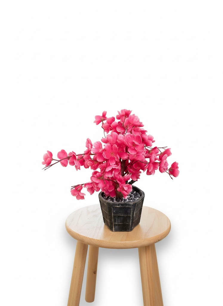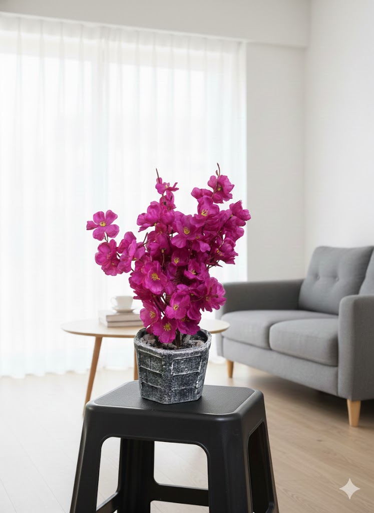 This elegant artificial flower plant adds a fresh and charming touch to any interior space. Designed with vibrant pink blossoms, it closely resembles natural flowers and brings a lively, soothing ambiance to your décor. The plant is set in a sturdy black pot, offering a modern and minimal look that complements various interior styles.