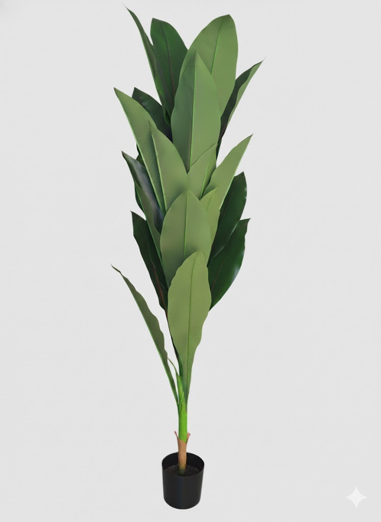 This is a beautiful artificial floor plant with tall, broad green leaves that give a fresh and natural appearance. The realistic leaf design closely resembles a real plant, adding elegance and greenery to any space. Made from high-quality materials, it is durable and long-lasting.