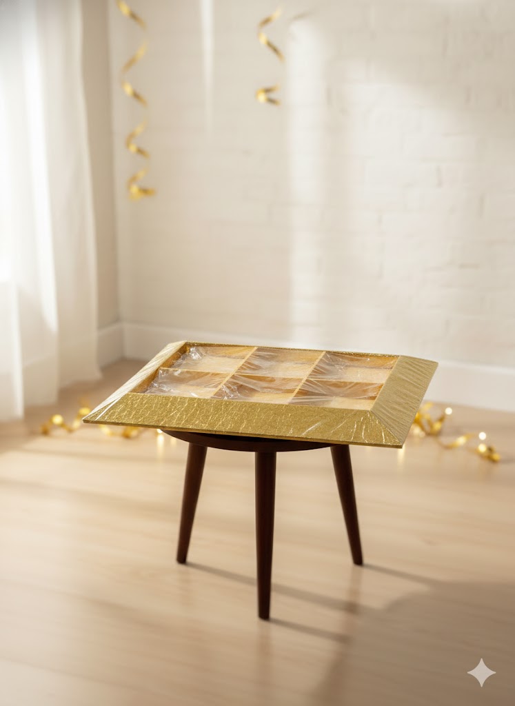 This elegant golden decorative tray is perfect for gift hampers, festive decor, pooja arrangements, and serving purposes. Crafted with a premium textured finish, it adds a touch of luxury and sophistication to any occasion. Ideal for weddings, festivals, housewarming ceremonies, and special celebrations. Durable, stylish, and easy to maintain, this tray enhances the beauty of your presentation effortlessly.