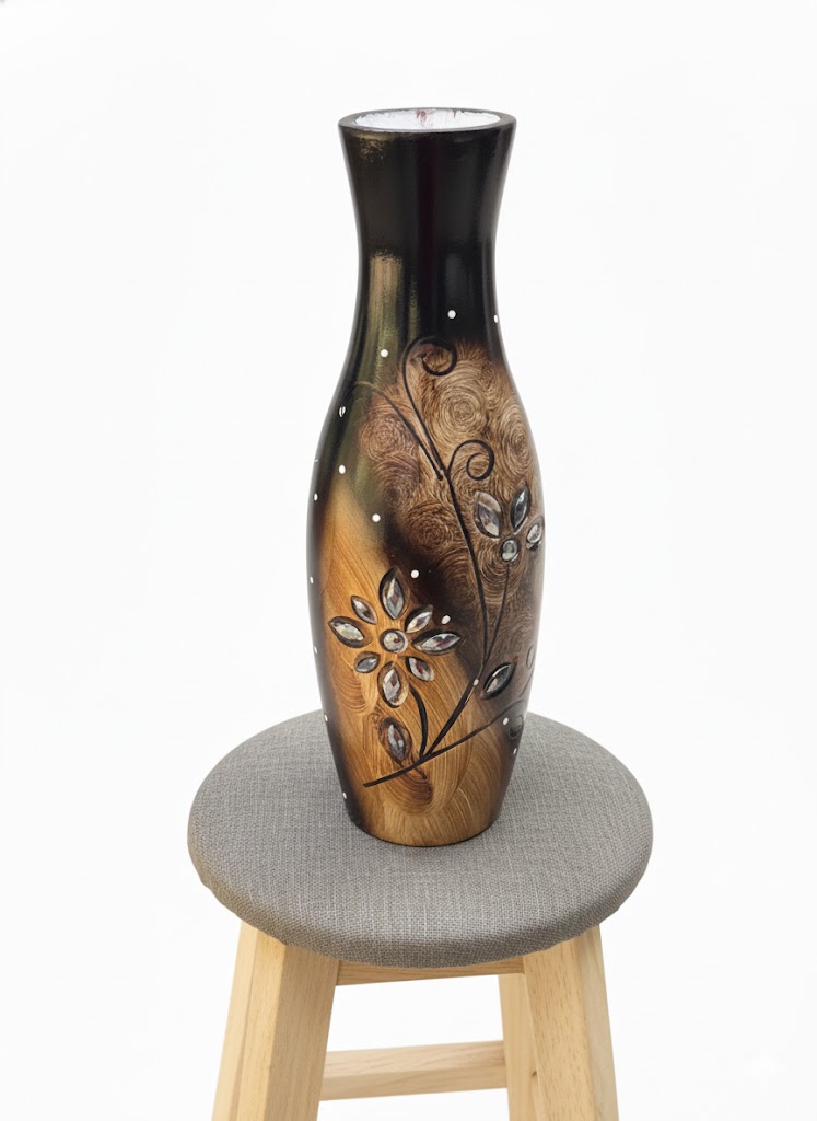 This handcrafted artistic decorative vase adds a royal and premium touch to your home interior. The elegant brown and black color combination with floral design enhances its visual appeal. Perfect for living rooms, halls, offices, or display corners. Suitable for dry flowers or artificial arrangements, this vase is an ideal home décor accent.