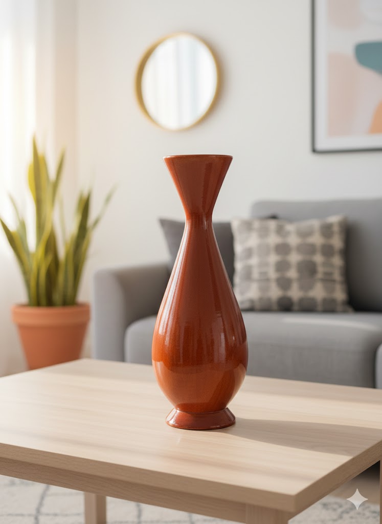 “A beautifully crafted wooden vase with a smooth polished finish, designed to add a touch of elegance to any space. Its classic curved shape and rich wood texture make it perfect for displaying artificial flowers, dried stems, or simply as a standalone décor piece. Ideal for living rooms, offices, reception tables, and home interiors.”