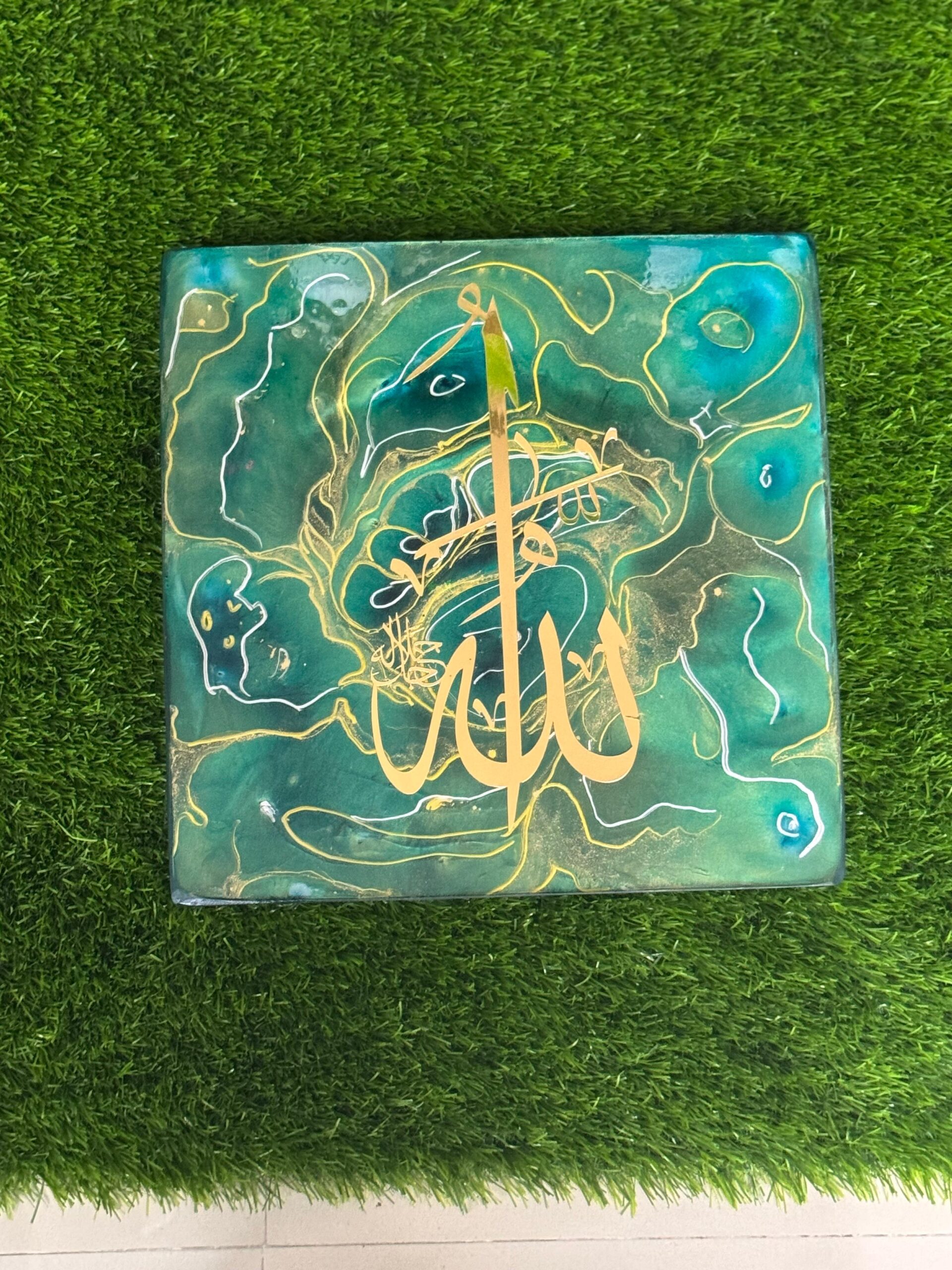 Add a touch of spiritual elegance to your space with this Luxury Islamic Calligraphy Wall Frame. Crafted with intricate golden calligraphy set against a stunning marble-inspired background, this piece blends faith and artistry beautifully. The high-gloss resin finish and rich green-gold tones bring depth and sophistication, making it a perfect centerpiece for your living room, prayer area, or office décor.